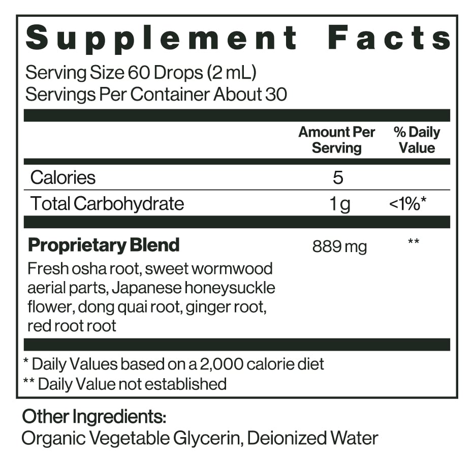 This formula was developed in 2020 as part of a three-piece care package for friends, family, and my community. It contains a blend of tonic, damp-draining, and heat-clearing herbs to provide various angles of early support for the lung microbiome.*