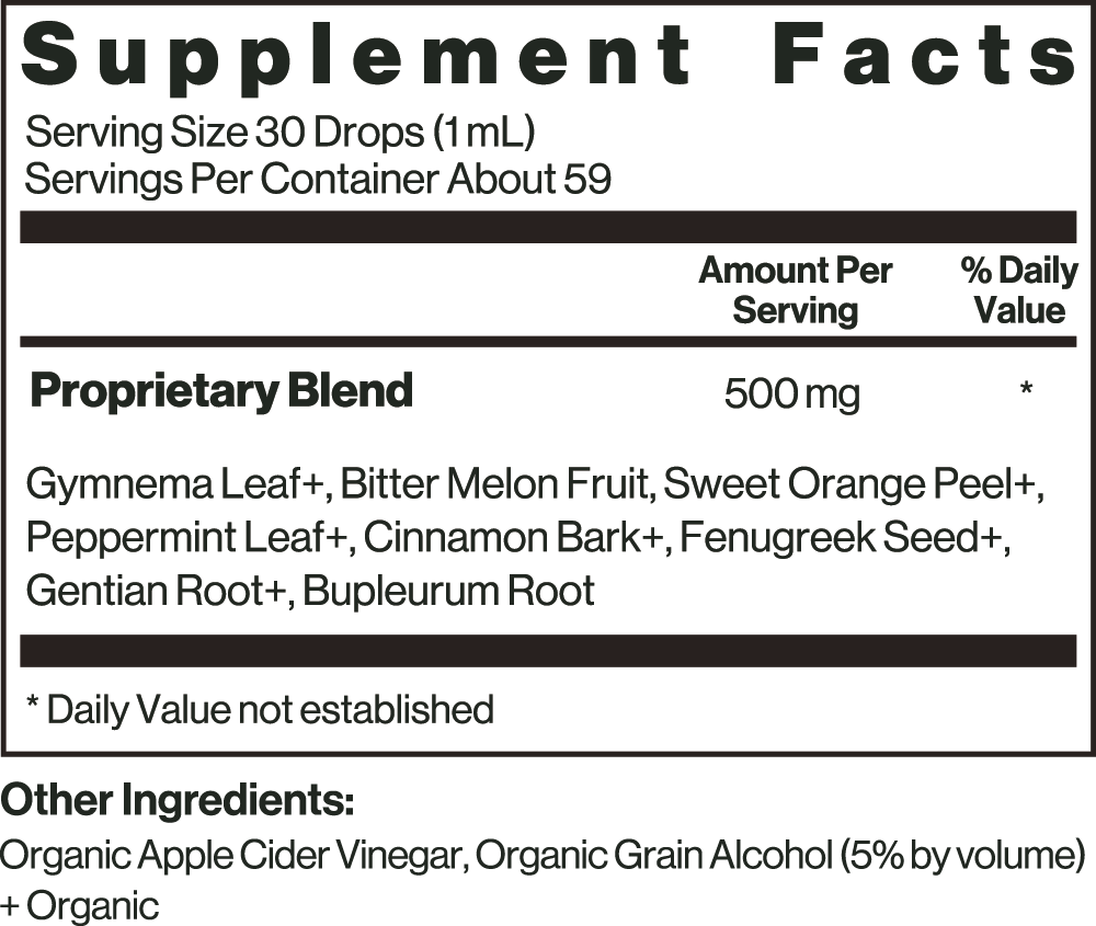 The bitter botanicals within this blend include Gymnema, Bitter Melon, Gentian, Cinnamon, and more.*