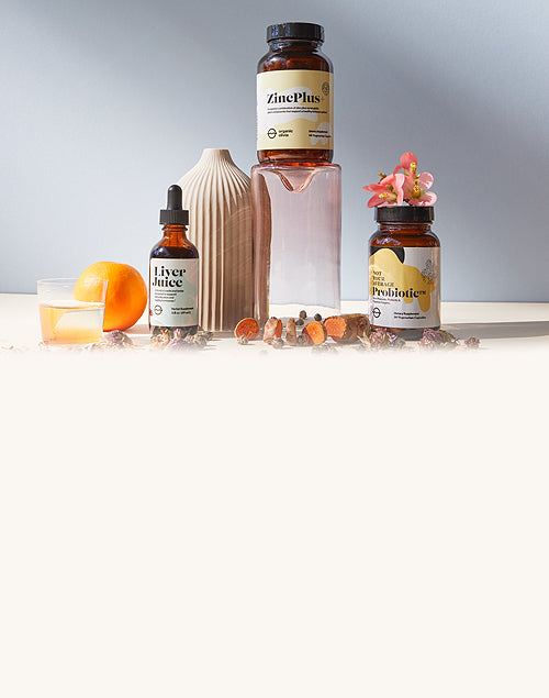 The final pillar of skin health involves the skin’s very own immune function, and its ability to maintain bacterial balance. Zinc is key for whole-body immune health, including the skin’s localized immune defenses against opportunistic imbalances that can lead to irritation and blemishes. This formula helps to balance our skin’s microbiome from the inside out, and contains plant flavonoids that further modulate the gut microbiome.