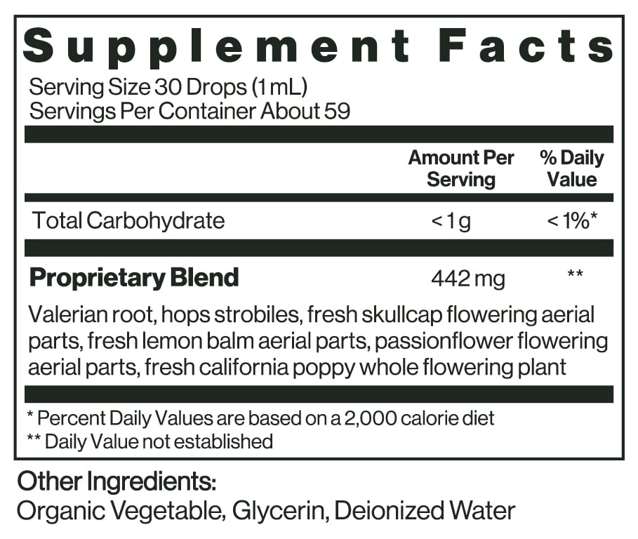 This formula contains a blend of calming, nourishing, and balancing herbs that help you achieve the rest you need to recover from the compounding demands of daily life. Take one dose an hour before bed to help you wind down, then another at bedtime to support a natural transition to sleep.*