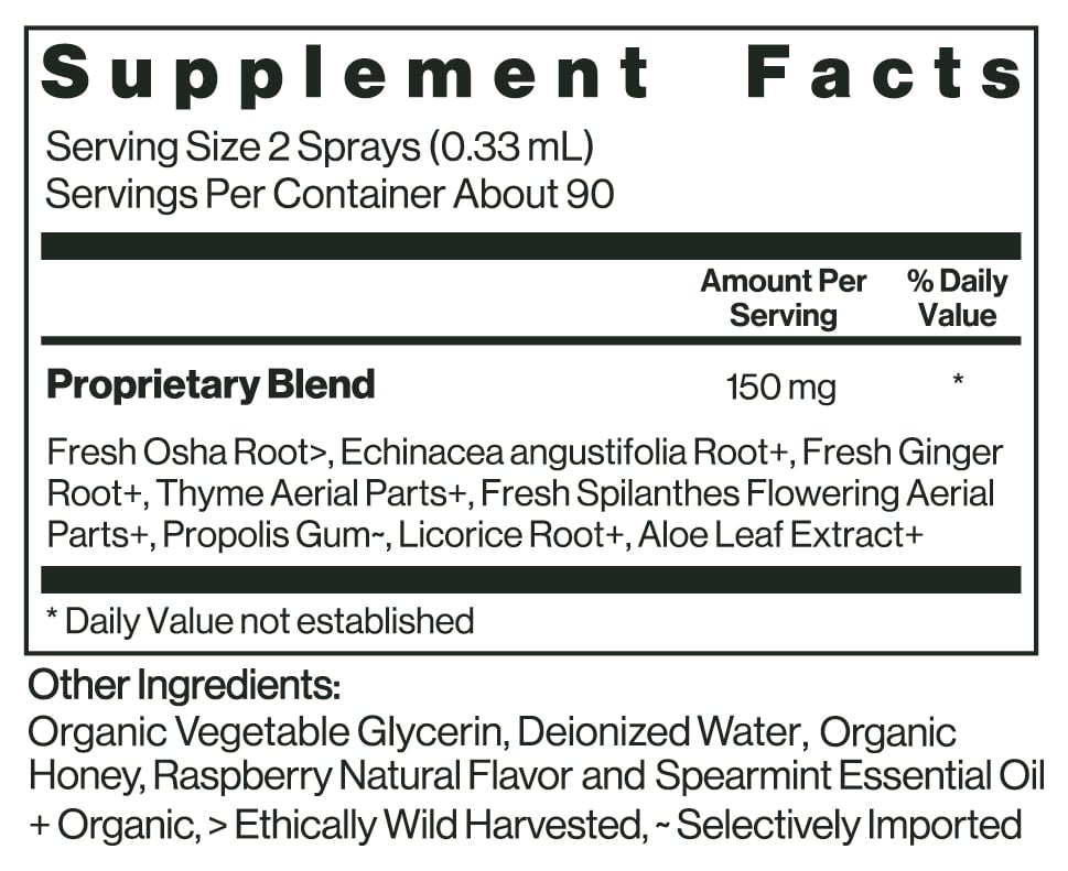 These herbal allies not only combat dryness and occasional discomfort, but support the mucosal layer where immune health is the first line of defense. Both Echinacea and Spilanthes add to this action by supporting healthy saliva production, which assists the normal pH of the mouth and throat to further support healthy boundaries and immune function.*